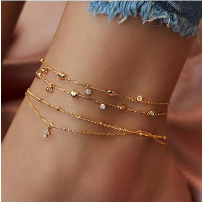 Багатошаровий браслет на ногу з хрестиком. Прикраса для ніг. Цепочка на ногу. Браслеты на ногу